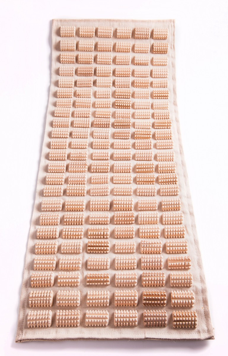 Килимок масажний зі щільної лляної тканини з закріпленими на ній дерев'яними «їжнями» з бука.