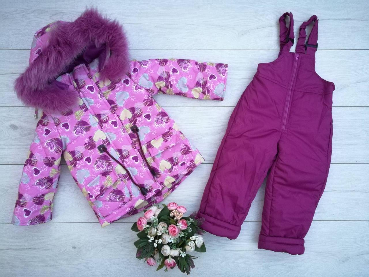 Дитячий зимовий комбінезон+ штани "Сердечка" на овчині дівчинка 1 рік